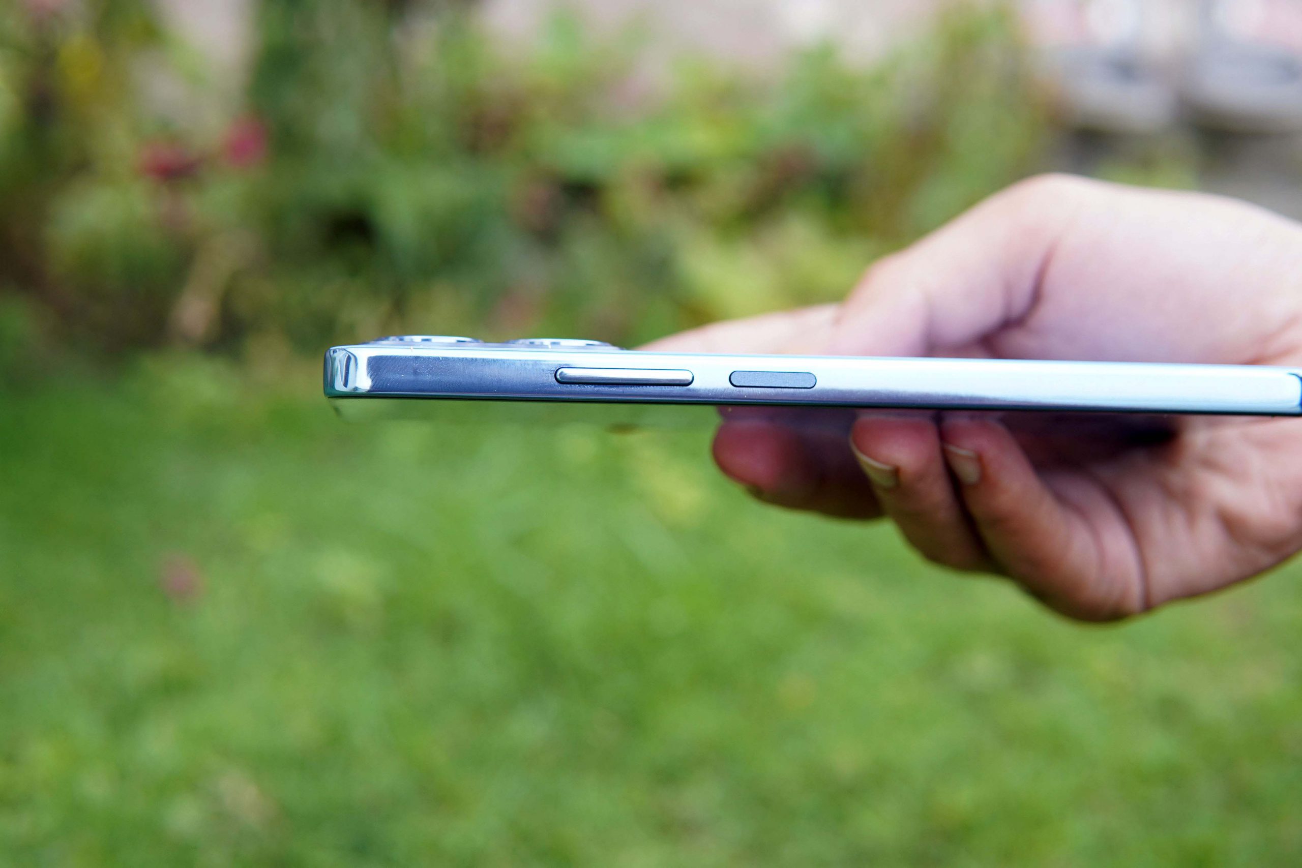 The S1 Pro has a big footprint, making it difficult to use with a single hand. Moving on, the right side of the phone has volume rockers and a power button. The fingerprint sensor is embedded in the power button and it works well. However, it is a bit slower compared to some other sensors at this price tag.