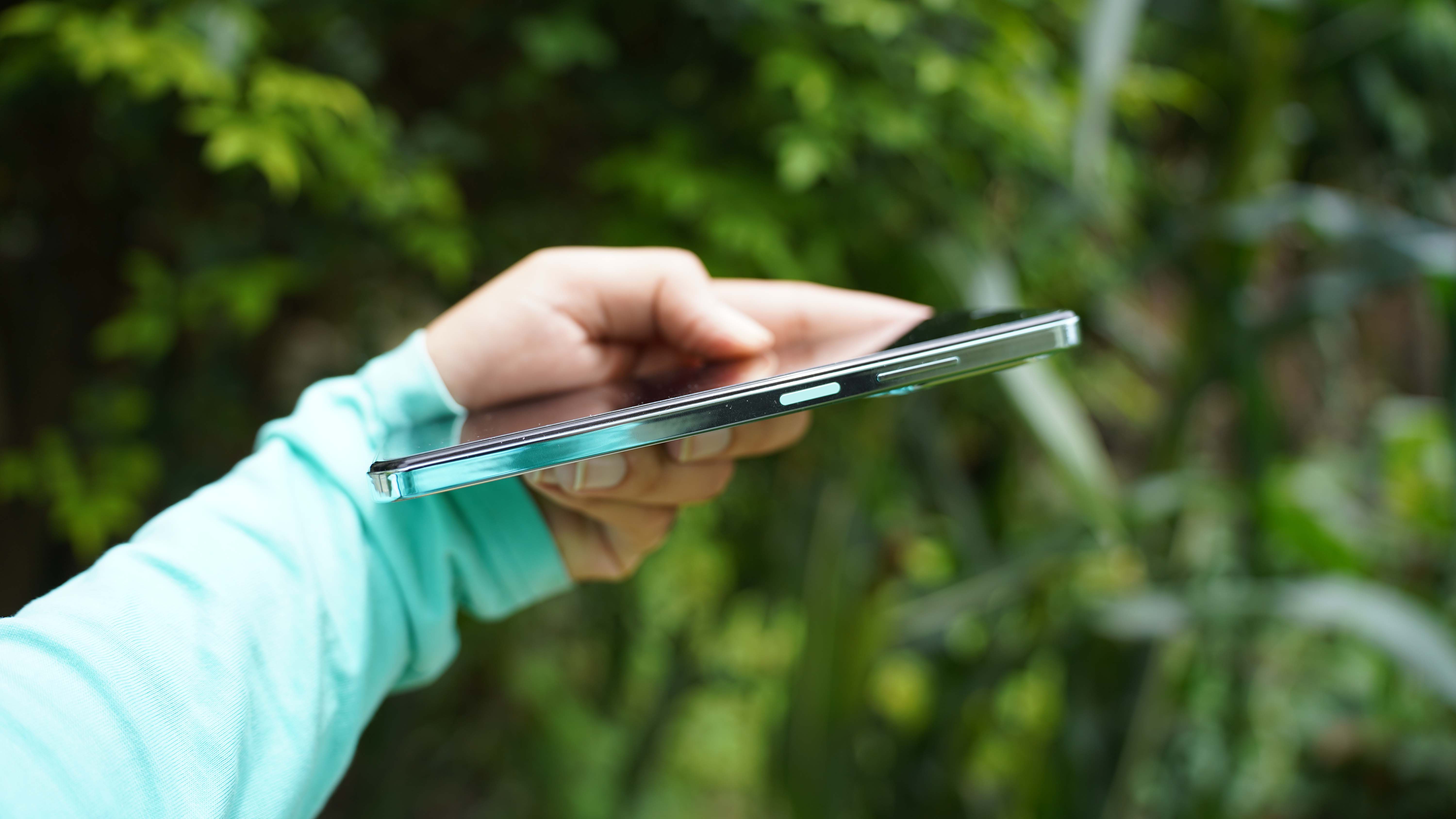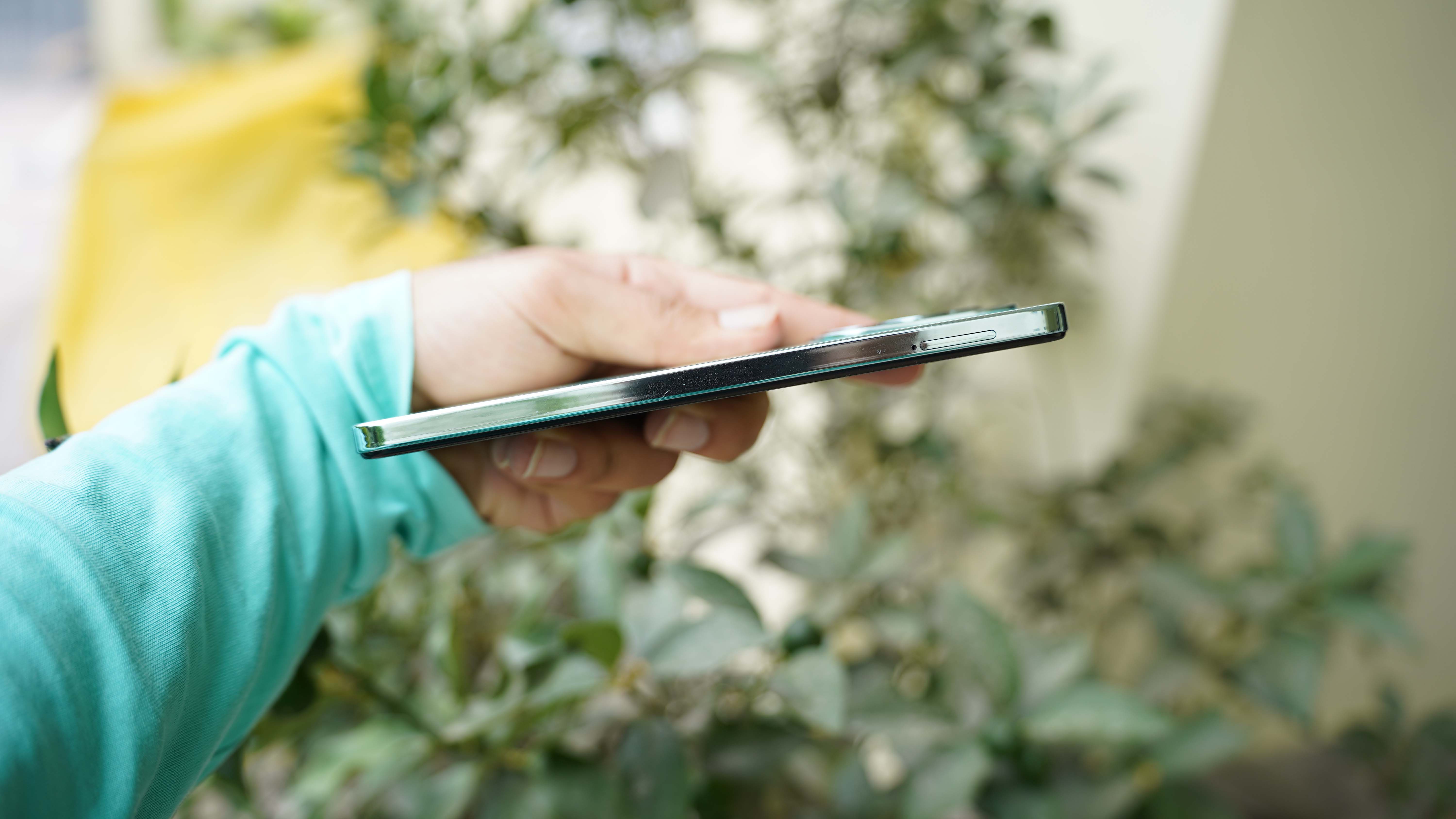 The power and volume buttons are located on the right side, whereas the SIM card tray is on the left side. The power button has a different color than the volume buttons and also doubles as a fingerprint sensor, which works well.