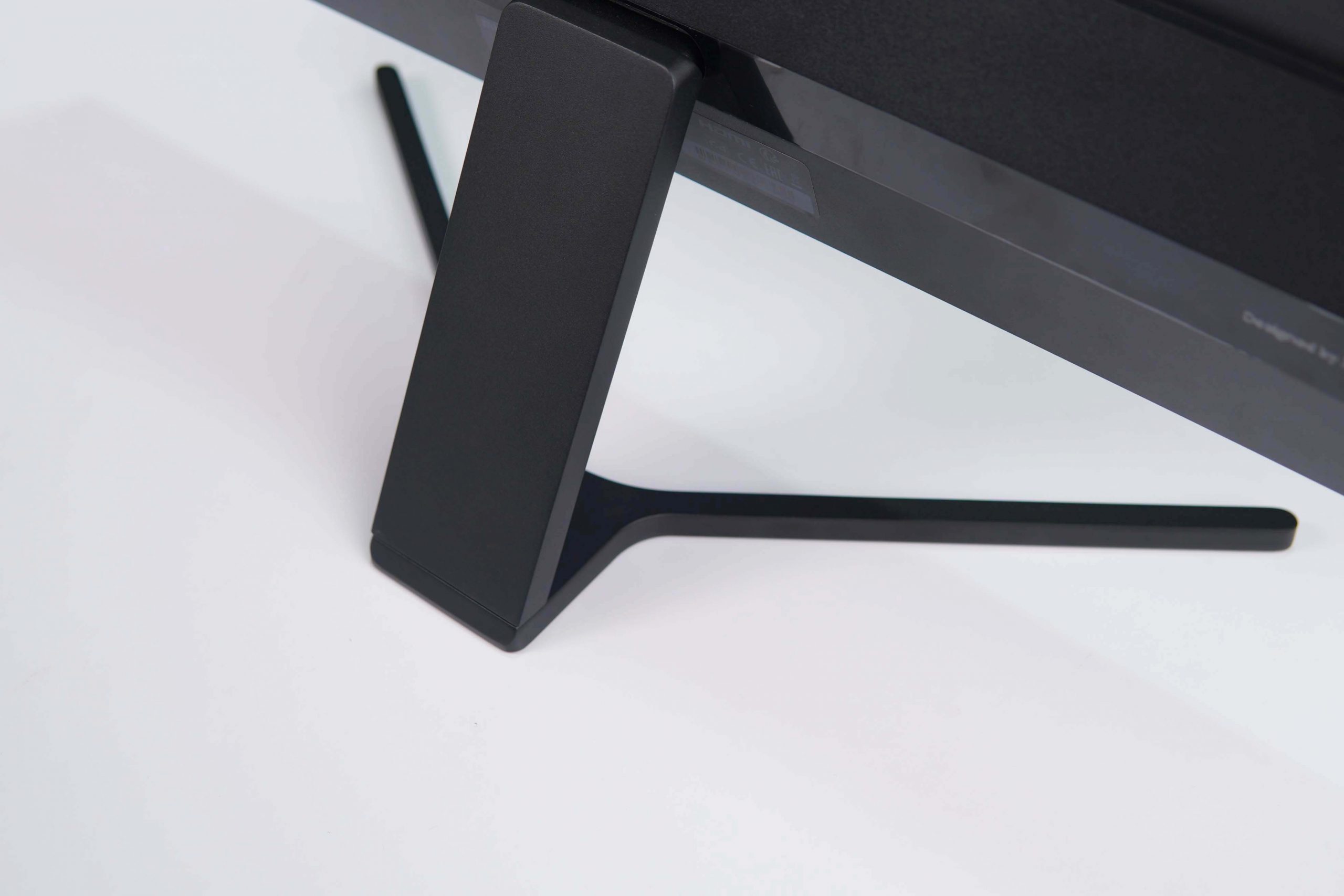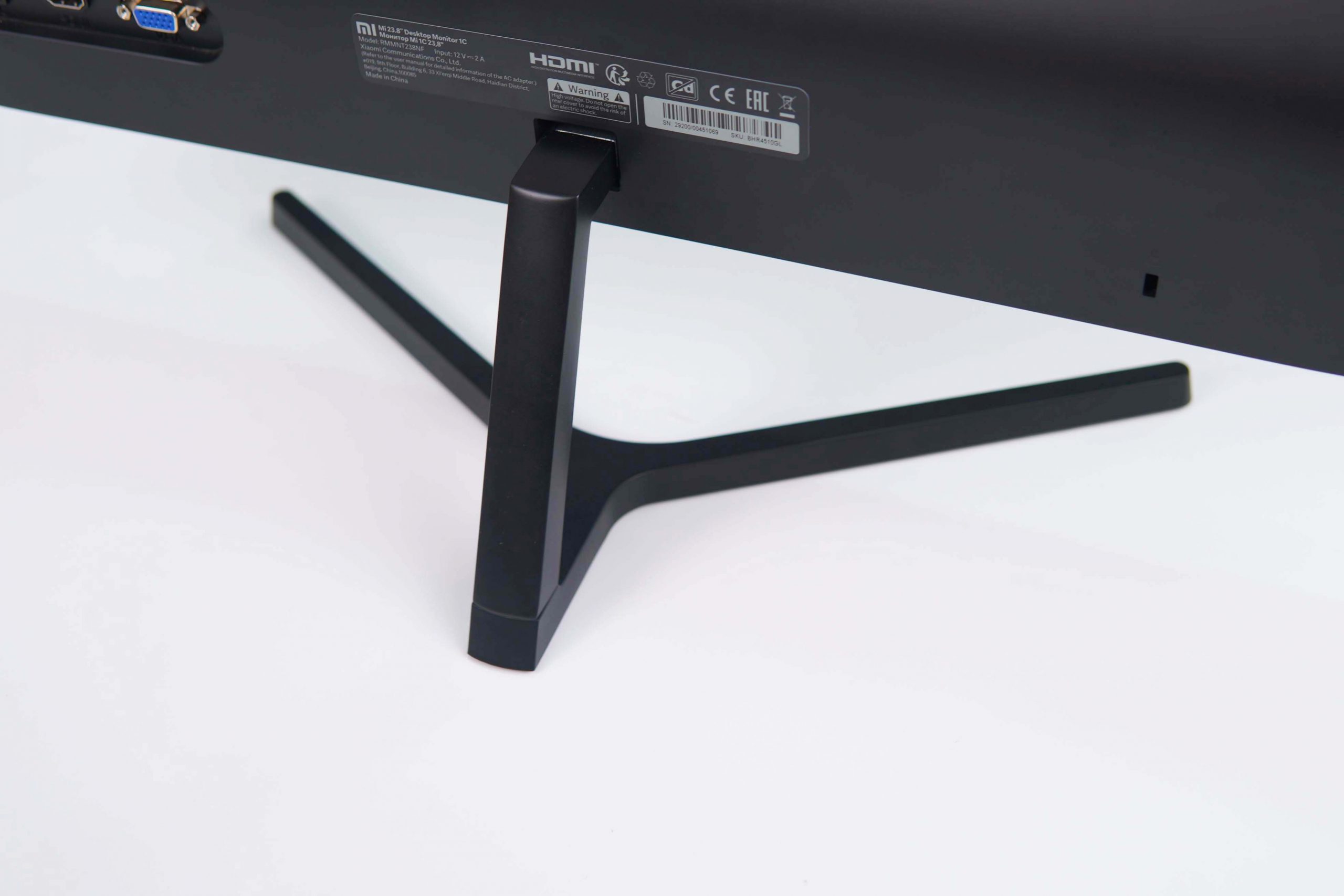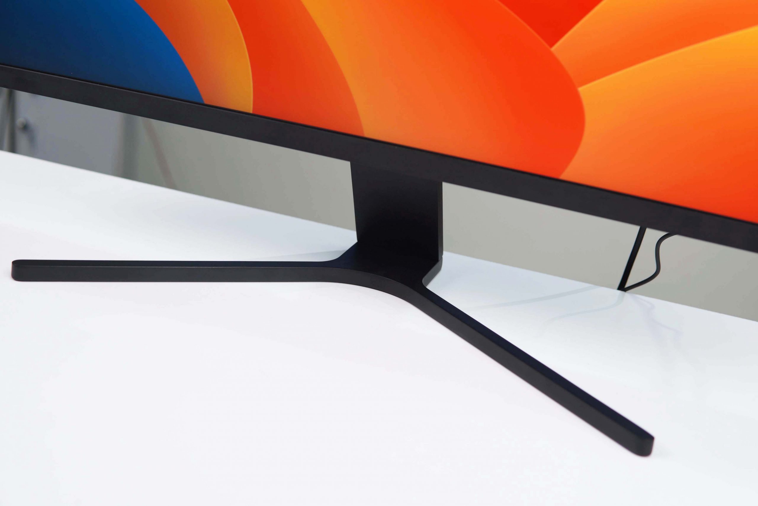The 23.8-inch and 27-inch Mi monitors come with a 2-piece metal stand and plastic body. The metal stand feels firm and durable. The slim profile of the stand feet helps the monitor take up less space on the desk.