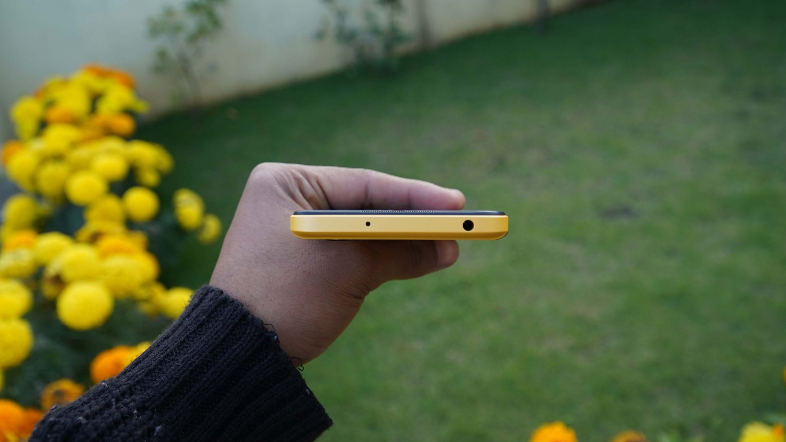 Our review unit of the Poco M5 is in yellow color. It does look flashy and the big camera band makes the design loud.