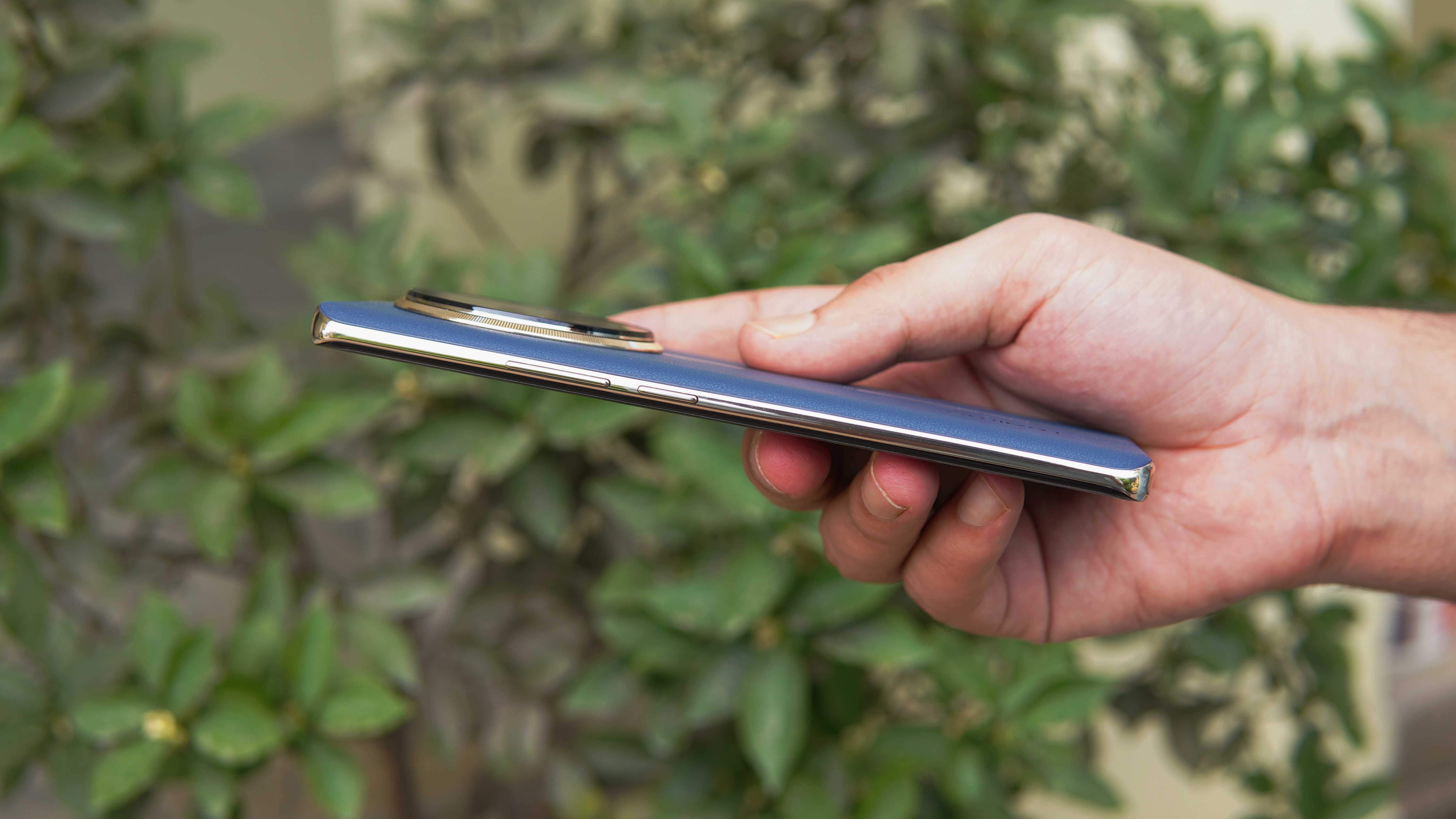 The edges meet the plastic side frame without forming any gaps, creating a smooth transition between the frame and back that makes the phone feel more comfortable. In addition, the leather back provides a good grip.