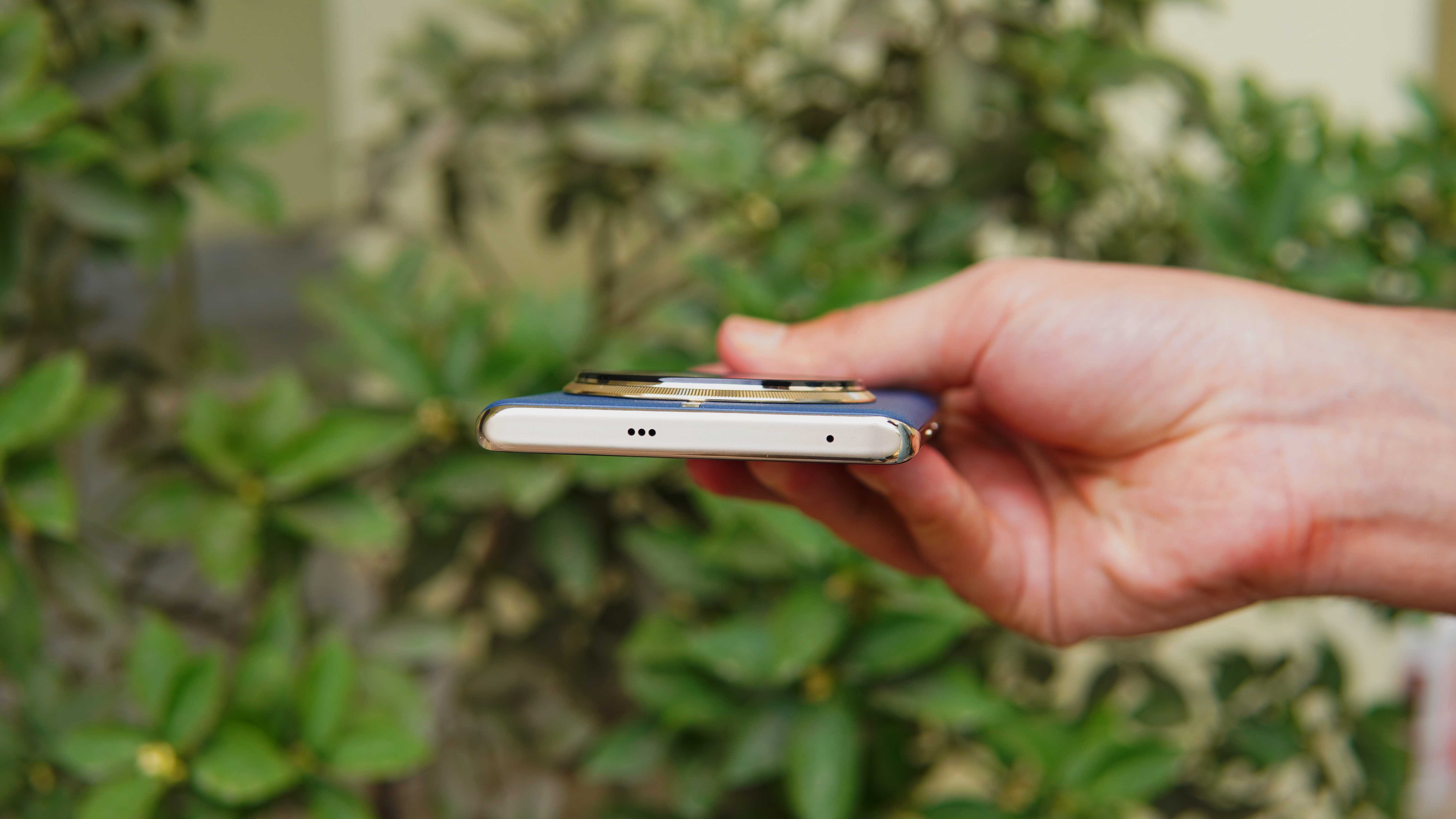 On the bottom is a SIM tray slot, a microphone, a USB Type-C port, and a speaker. On the top, you’ll find the mic and a speaker outlet.