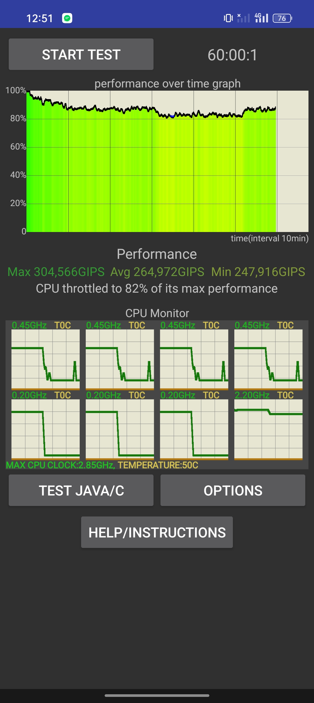 Dimensity 8100 is also really good at sustained performance as it only throttled to 82% in our 60 mins CPU throttling test.