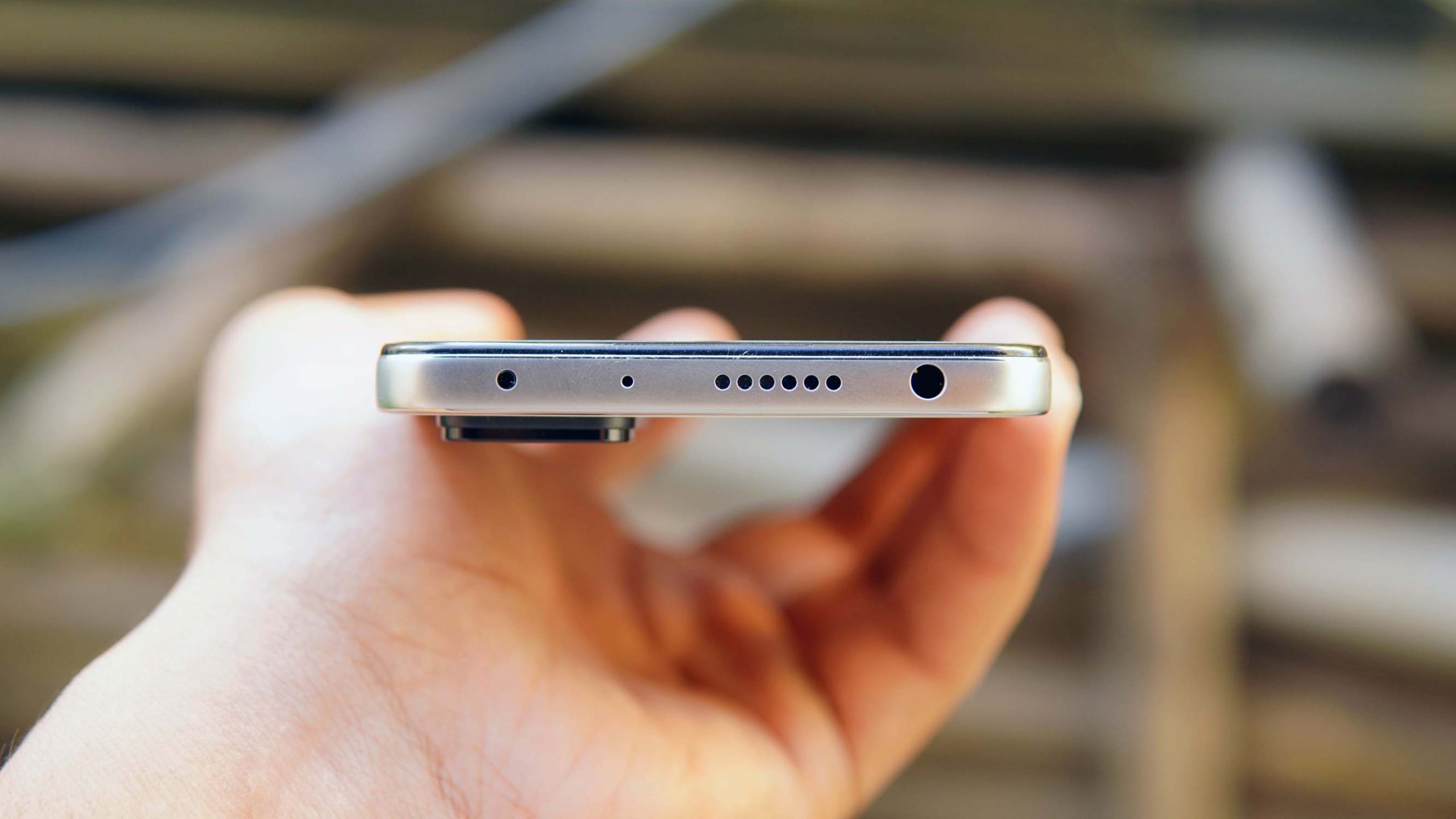 There are volume and power buttons on the right side, with an embedded fingerprint sensor on the latter. At the bottom, there’s a sim tray slot, USB-C port, a mic, and a speaker. Up top, there’s a 3.5mm headphone jack, another speaker, mic, and an IR blaster.