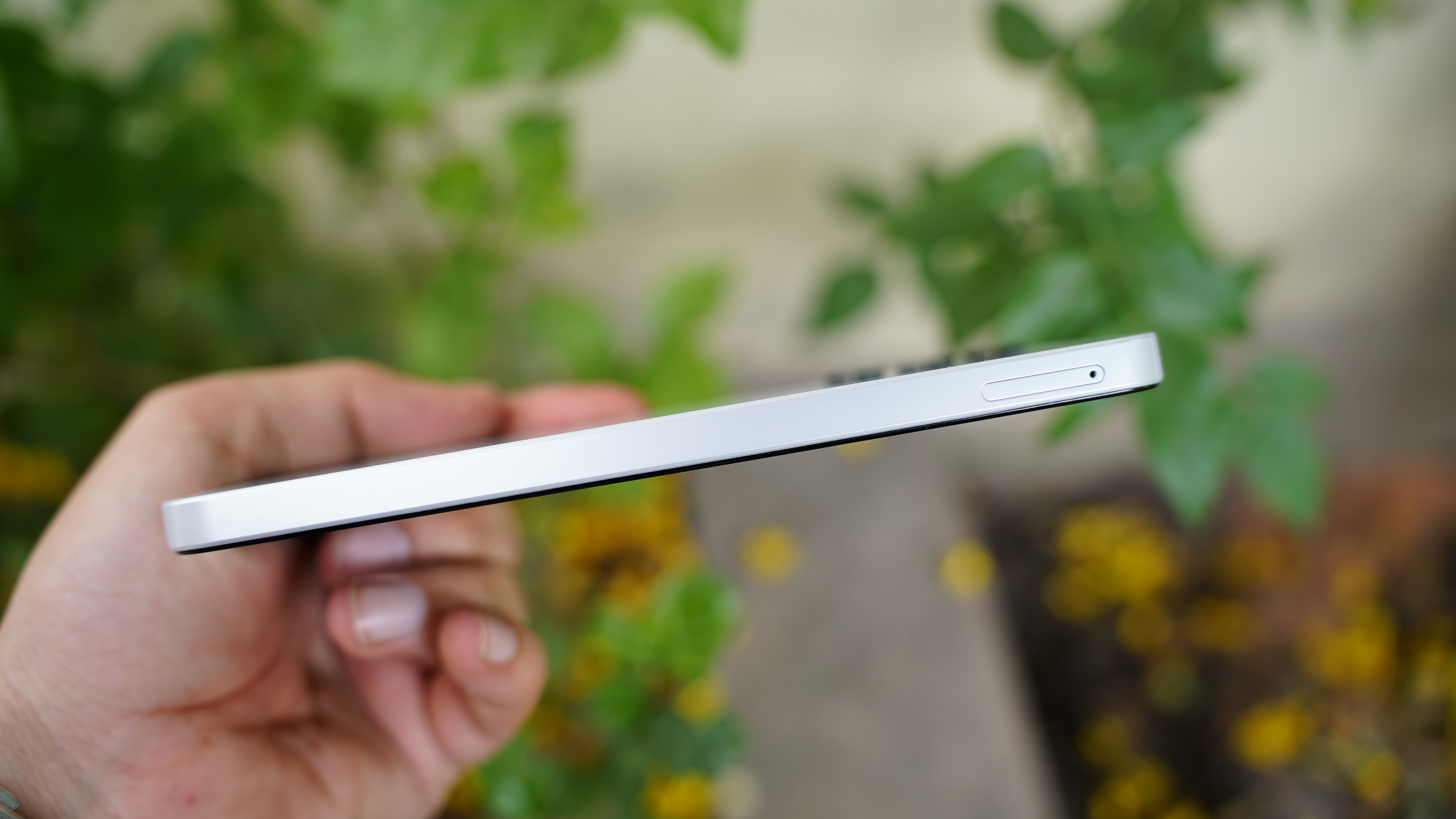 The 3.5mm headphone jack, USB-C port, and the speaker are all located on the bottom side. Likewise, the hybrid SIM card slot with microSD card support is on the left side. The speaker is a single bottom-firing speaker. It’s loud but the quality is average.