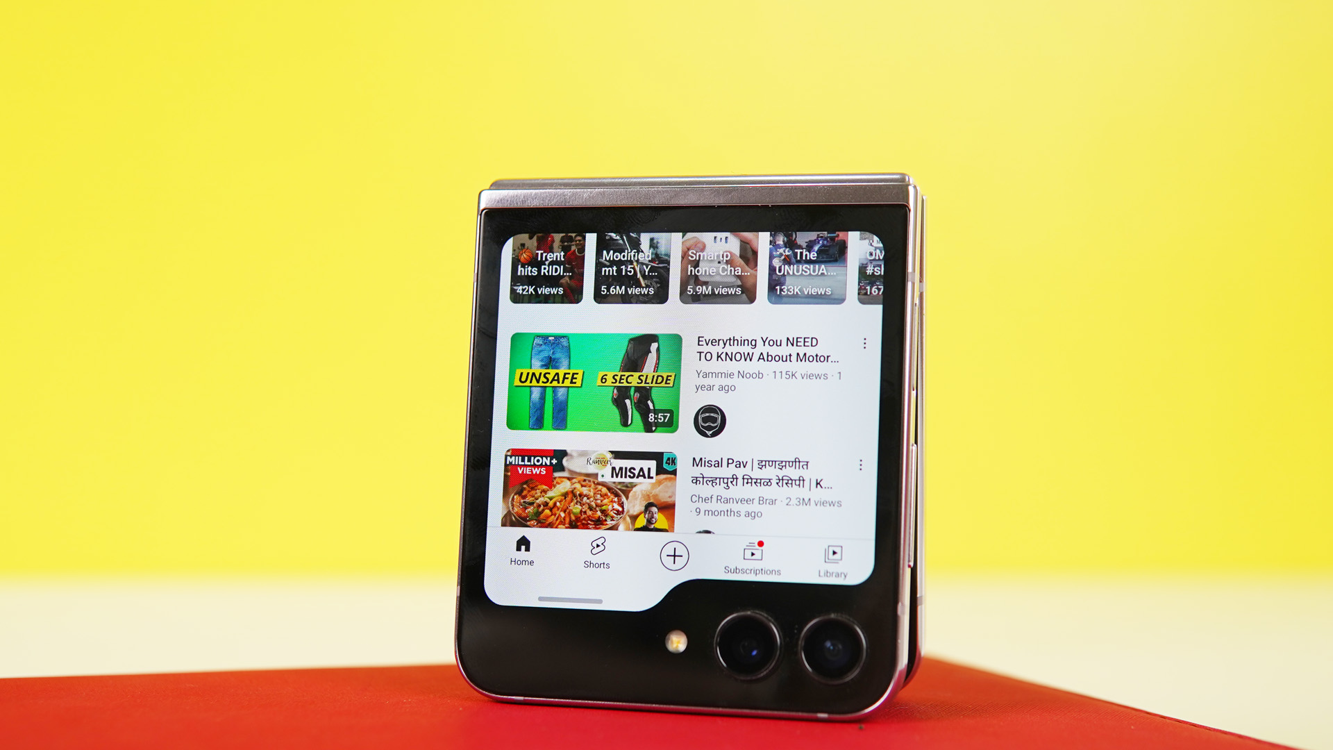 The flip phone is unexplainably versatile when it comes to capturing videos. You can adjust the phone at various angles in the cover screen mode and capture videos without any selfie sticks or a tripod.