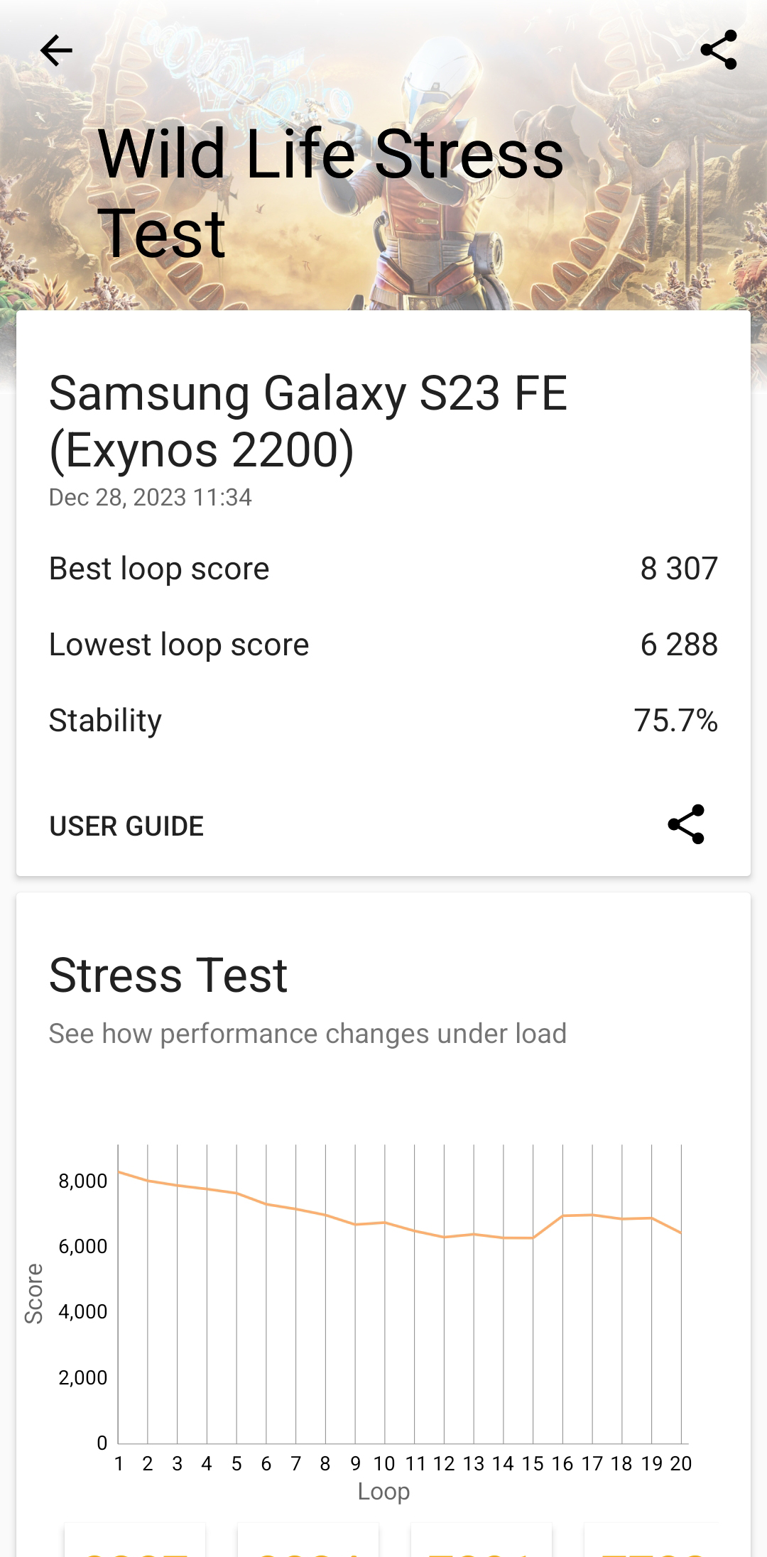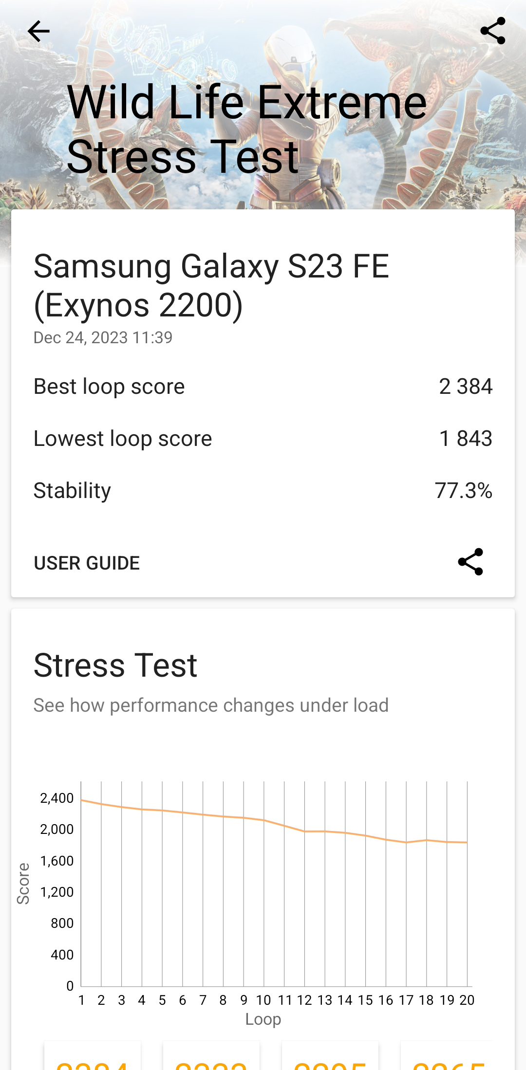 While the benchmark scores of the Exynos 2200 and Snapdragon 8 Gen 1 are quite close, the Snapdragon 8 Gen 1 takes a slight lead. The lead is apparent in Multi-Core CPU performance and GPU performance. Surprisingly, it performs outstandingly in the 3DMark Wildlife Extreme Stress Test with 77.3% stability.