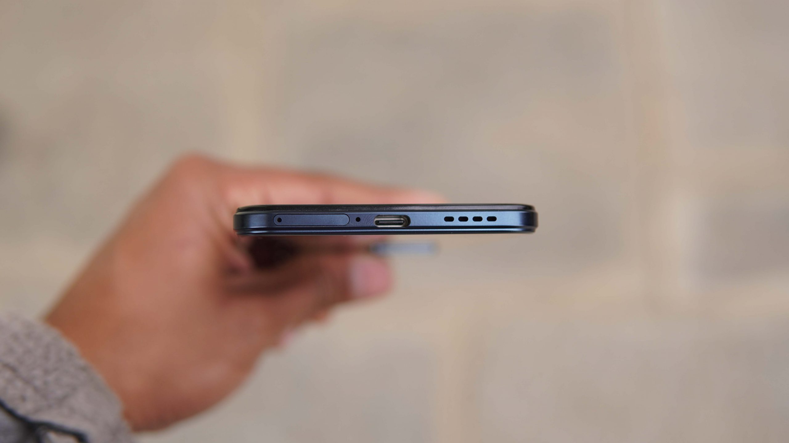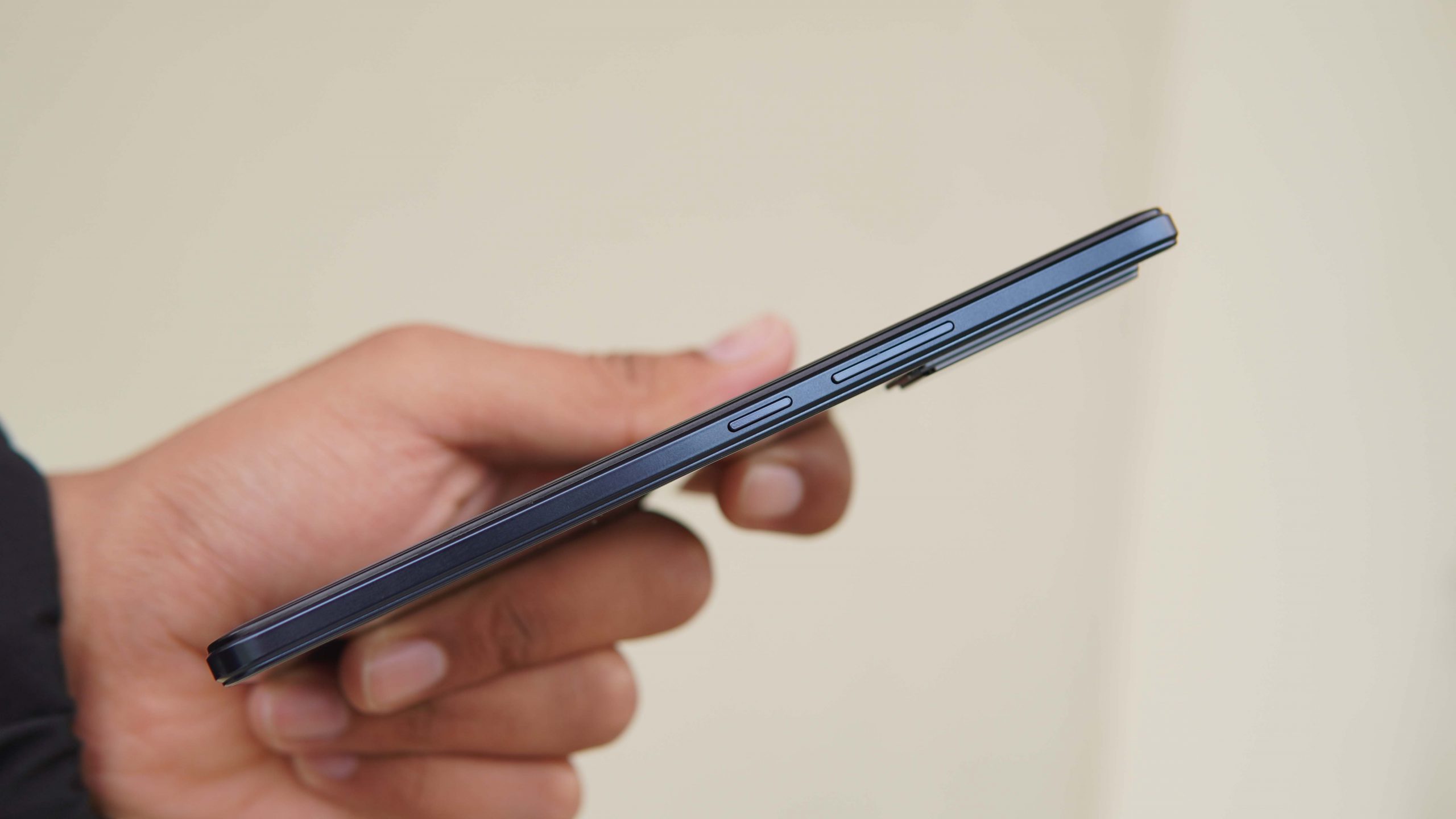 For ports and buttons, the volume and power buttons are on the right side. On the bottom, we get a hybrid sim slot, mic, USB-Type C port, and a speaker.