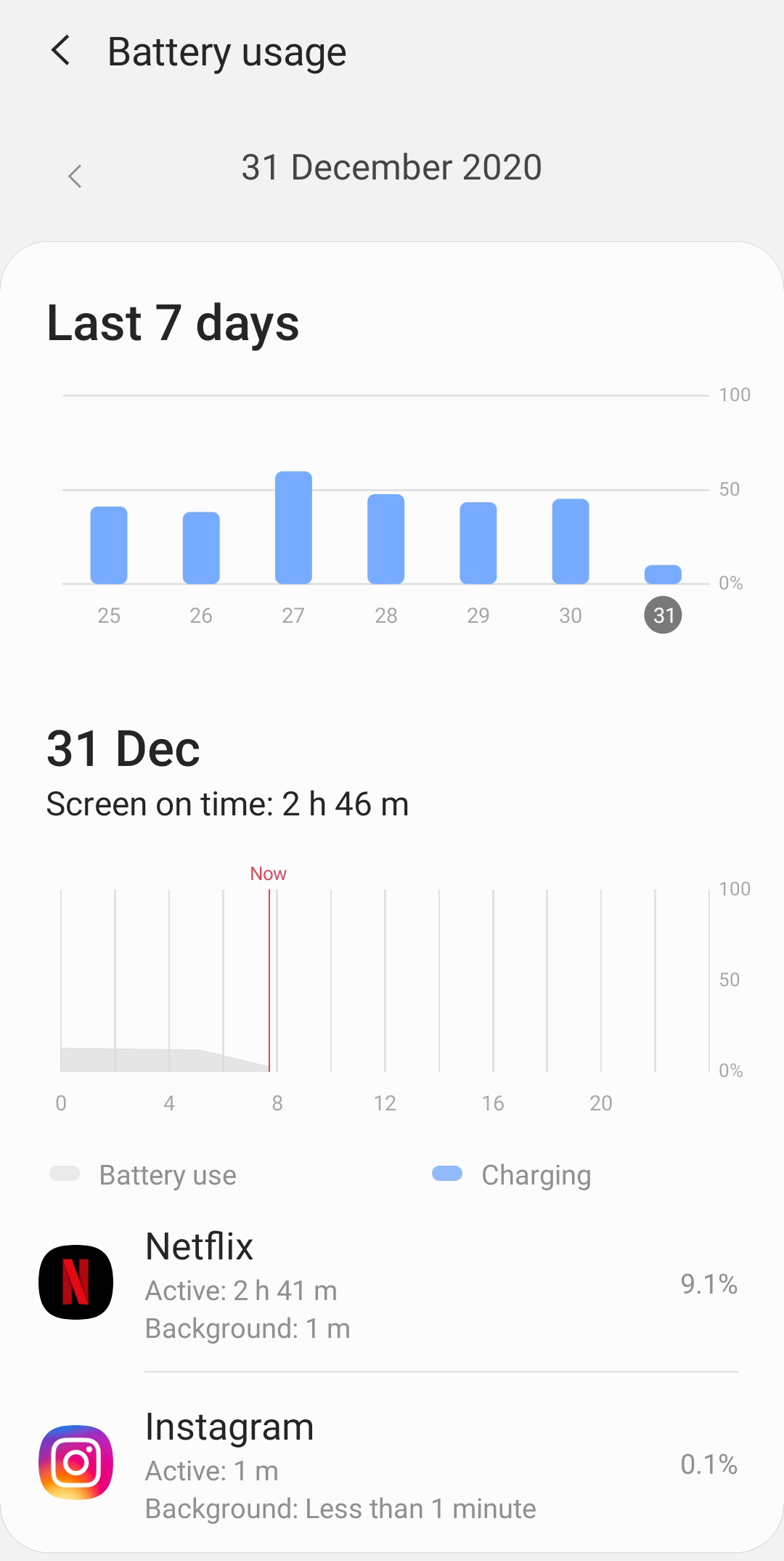 On average I was getting about 9-10 hours of screen on time. And, I was able to get up to a maximum of 14 hours of screen on time. I was easily able to get through 2 days of usage while I was binging tv shows on Netflix. I did not play games during this usage period though. Check out my usage below.
